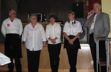 Arbetstempot var stundom mycket högt i köket men det blev också många goda skratt. Medan gästerna njöt av den vällagade maten diskades det och plockades i och ur skåp med en rasande fart för att förbereda för nästa rätt. Till sin hjälp hade Hasse LiseLotte Lindberg, Gun Nilsson och Ella Ingemansson.