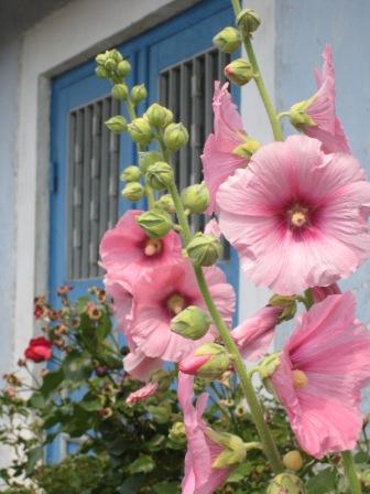 STOCKROSOR, ALTHEA ROSEA Stockrosor har odlats så länge att man inte längre kan bestämma dess vilda ursprung men man tror att den härstammar från trakterna runt östra Medelhavsområdet. Troligtvis kom den till Europa på 1200-talet i samband med korstågen. I Skåne växer stockrosorna lätt högre än taket på den klassiska låga längan. Denna underbara gammaldags blomma med stora rosetter eller tofsar reser sig över bladen i spiror. Stockrosen är en verklig stugträdgårdsväxt som glatt växer genom sprickor i stenläggningen mot en husvägg där dess höjd kommer till sin rätt. Stockrosor förekommer uteslutande som trädgårdsväxt men kan tillfälligt ses förvildad. Blomningstiden är från juli till september och det kan ta ända upp till två månader innan den sista blomman slagit ut på en enskild planta. Blommorna finns både som fyllda och enkla och kan ha alla färger utom blått - från rent vitt till nästan svart. Höjden blir omkring 2 meter men kan bli ända upp till 3 meter. Stockrosor vill ha väl-dränerade och även steniga, men näringsrika jordar i ljust läge. Den behöver stöd utom på skyddade lägen. Stockrosor är vanligtvis 2-åriga men det finns också en flerårig variant, Althea ficifolia, vilken med tiden blir mycket omfångsrik. Höjd och blomfärger som hos den vanliga. Förr användes Stockrosor som läkeväxt. Artnamnet Rosea kommer av Rosa som är det vetenskapliga namnet för rosor.