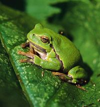 Lövgrodan är en mycket liten art men med en stor förmåga att ge ifrån sig ljud. När den spelar under maj och juni kan man på natten höra den på flera kilometers avstånd. Lövgrodan jagar sin föda i buskage och trädkronor. I reservatet kan man ofta se den sitta på björnbärsbladen när det är soligt.