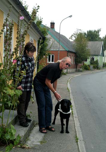 Vi som har synen i behåll kan fundera på hur det skulle vara att hela tiden behöva ha kartan i huvudet och tänka på var vi är och var vi skall svänga nästa gång. Och inte minst viktigt var vi skall gå över vägen. Dante visar var trottoarkanten är, men det är Leffe som säger till när de skall gå över.