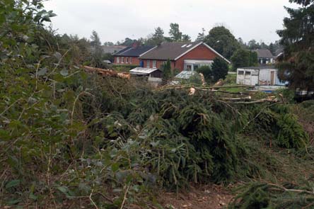 Tomelilla Kommun har fällt granarna i Smedstorp mellan Kanalgatan och Frans Lindbergs väg.