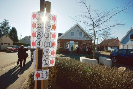 Vägvisning till alla gallerier och konstnärer Galler i Banken ses i bakgrunden