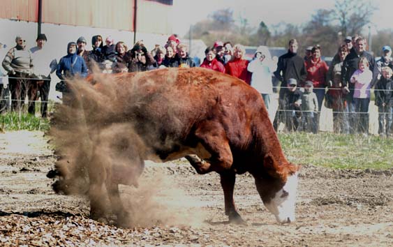 Solsken från klarblå himmel och en smula kylig vind. Måste vara precis sådant väder som pälsklädda (fyrbenta) damer önskar sig när de ska ut på galej! När klockan närmade sig 13 märktes det att de första kossorna var beredda. Förväntansfulla muu hördes över nejden när så äntligen grindarna öppnades. Lite tvekan vid högen med sågspån utanför grinden ? och sedan full fart ut!