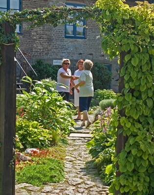 Bakom en anspråkslös träport på Storgatan gömmer sig en av Smedstorps vackraste trädgårdar. Redan den lilla planteringen vid sidan om porten skvallrar om att ägarna har stort intresse för trädgårdsodling och dessutom osedvanligt gröna fingrar och kreativ förmåga. Per Baker, som är konstsmed, har sin verksamhet inrymd i gårdshuset och skylten vid gatan bjuder in smides- och designintresserade till galleriet. Föga anar man att där också finns en fantastisk trädgård! Margareta och Per kom till Smedstorp för 10 år sedan och har sedan dess arbetat med huset och trädgården. Resultatet är slående och idag hämtar många besökare inspiration från Gamla Bryggeriets trädgård. Beslutet att öppna trädgården för intresserade var inte svårt eftersom Margareta och Per märkte att deras brinnande hobby var till så stor glädje för andra.