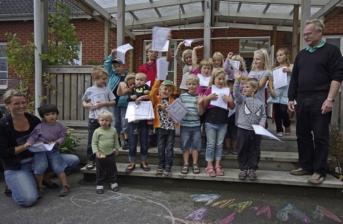 Tova måste smaka på kritan... Alla barnen samlades till sist och fick diplom för deras kreativitet på barnsalongen. Samtidigt påmindes alla barn om nästa aktivitet för barn på banken, att plundra bankvalvet till påsk! Synd att man är vuxen...