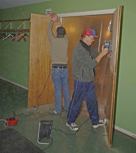 Flitens lampa lyste i ”Palatset” måndagen den 16 nov. Cirka tio smedstorpsbor hade hörsammat uppropet att påbörja en uppfräschning av vår samlingslokal. Köket fick sig en välbehövlig städgenomgång och i stora samlingslokalen inventerades textilierna och planering av nyanskaffning av dito. Entrédörrarna angreps med stor optimism och slipdammet yrde. När dammet väl lagt sig och lacken torkat så konstaterades att insidan blev OK men andra sidan hade konfronterats allt för hårt av glada besökare genom åren och att den ytan var bortom all räddning. De rostfläckiga stora värmeelementen vid sidan av scenen blev som nya med lite hjälp av vit färg. Efter väl förrättat värv så samlade vi till en avslutande kaffestund med ett riktig bullfest. När nästa arbetskväll blir känner inte skribenten till.