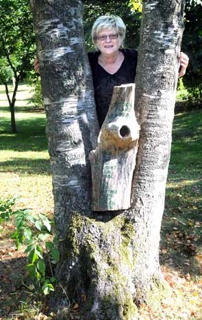 Catrin vid ett av de många träden som planterades för snart 100 år sedan