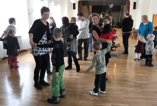 De icke dansanta, såväl som de törstande som rasat sig varma får påfyllning av kaffe, saft och kakor. En julig doft stiger upp från kaffeserveringen. Därfrån slinker än det ena än det andra lätt ner. Gott. Mycket gott tänker de mumsande medans nyårs-löftena tycks dansas ut även de.