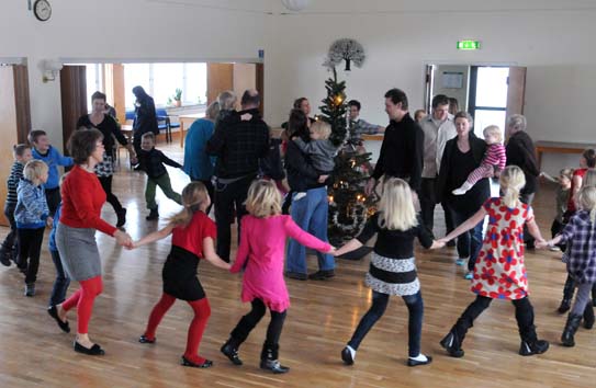 Då ett par dagar med plusgrader skapat blask och glashala vägar var det dags för tack och farväl av julen. Granen skall plundras, tomten packa sin säck för färden till Tomteland och julen slutligen dansas ut. På nyslipat och dito lackat golv i Medborgarhuset stod den lysande granen och tronade i mitten, till synes ovetande om sitt öde. Barn med spring i benen, föräldrar med småttingar eller vantar, utebyxor, mössor, halsdukar och jackor i fyllda famnar, far- och morföräldrar med minnen av åtskilliga julgransplundringar - alla var de förväntansfulla inför dansen. Jörgen, Sture och Therese fyller salen med musik, som inledningsvis saknar julprägel, men ger god stämning.
