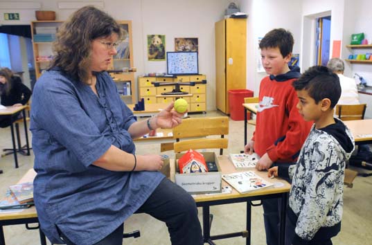 Tragglat och rabblat, övat och suddat, suckat och pustat – ja, det har många av oss gjort på matematiklektionerna i forna tiders skola. Idag är det annorlunda. Härligt annorlunda! Man klipper och klistrar, ritar och målar, slöjdar och syr, stegar och hoppar – allt i matematikens namn. För matte är något man ska förstå, inte bara skriva som siffror på ett rutat papper. Kuber och rektanglar, prismor och koner, cylindrar och cirklar är geometriska former och kroppar att se, känna och vrida på och tala om. Sen, först sen, räknar man. Smedstorpsskolan har fått, under det pågående läsåret, projektpengar till matematik från Skolverket. Syftet har varit att utveckla pedagogiken genom pedagogiska möten och utbildningar för såväl lärare som föräldrar, införskaffa och ta fram arbetsmaterial. Ska föräldrarna utbildas!!! undrar vän av ordning genast. Det är ju inget obligatoriskt precis, men en god hjälp för eleverna, och ett trevligt sätt att tillsammans med andra föräldrar och barn lära sig något nytt. För det är lite annat. Nu är det ju inte så att svaren på frågorna blivit annorlunda sen föräldrar generationen gick i skolan men vägen dit är inte riktigt den samma. Och det är roligare nu. Nu sitter färggranna bråktal på väggarna. Familjekväll på skolan görs för alla årskurser och ger barnen chansen att visa vad de sysslar med, och föräldrar och far- och morföräldrar får pröva på de nya sätten att tänka och ha roligt kring matematiken. Ingrid Ahnelöv är den entusiastiska projektledare som lett matteprojektet. Stolt över vad skolan åstadkommit och elevernas framsteg, men besviken över att det inte blir mer pengar. Men Ingrid har tillsammans med sina kollegor tagit fram en gedigen materialbank för matematiken, som är en god hjälp för lärarna i alla årskurser. Och satsningen har gett resultat inte bara i kvantiteten arbetsmaterial och pedagogisk utveckling utan i barnens kunskap, vilket ju är det primära målet. Från ett resultat på cirka 50 procent godkända på nationella proven till knappt 70 procent. Det är en mycket god utveckling! Men det går ju att bli än bättre på att förstå, kommunicera och lösa problem i matematikens värld. Och skolans lärare arbetar vidare med att vända de negativa attityderna kring matematiken och skapa förutsättningarna för att öka förståelsen. Och visst är eleverna duktiga. I år har Smedstorpsskolan två elever som utmärkt sig i den internationella Kängurutävlingen där 40 länder deltar med inalles 6 miljoner elever. Otroligt många, kort sagt. Den 7 april fick Annika Areskoug och Niklas Blohm och tio elever från andra skolor i kommunen, diplom utdelat av Ann-Margreth Månsson, skolutvecklare i Tomelilla. Hurra för Annika och Niklas!