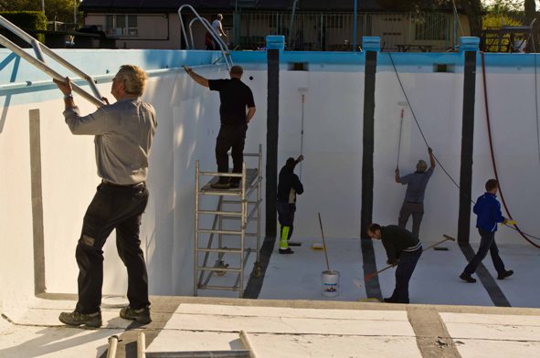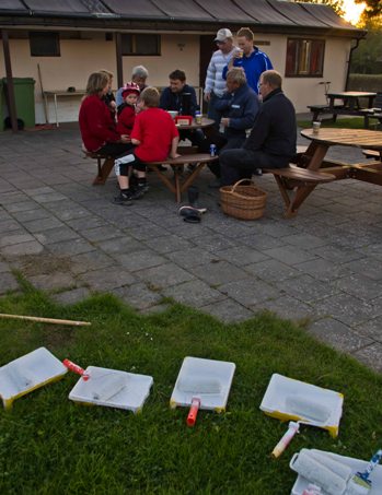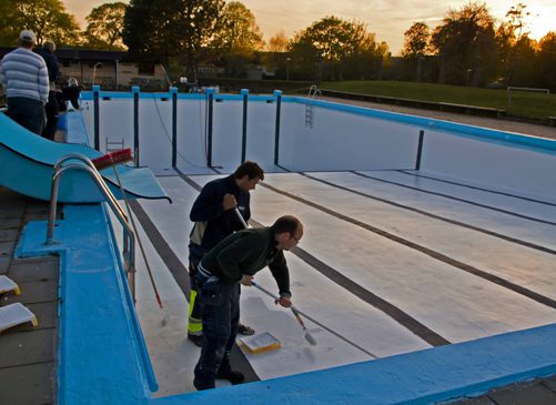 Men kossan i den passerande kovagnen var nog lite förundrad. I och runt lokalen blir det allehanda aktiviteter såsom, information om leden, litet café, liten marknad, företagare i byn kommer att visa upp produkter eller information om deras verksamhet. Så på kvällen var det dax för badets måndagsklubb att träffas, med god uppslutning och stor iver sattes årets målning igång i den fina kvällen. När så solen sjönk ner bakom horisonten så var bassängen i det närmaste helt färdigmålad och häcken trimmad. Kvällen avslutades med lite fika medan kvällskylan kom smygande.