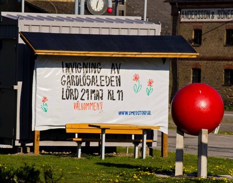 2011-05-11 Måndagen började med att väcka upp den gamla Citroën lokalen ur sin törnrosasömn, som varat i decennier. Det kånkades, skurades och fejades i hela lokalen inför försommarens stora evenemang, invigningen av Gårdlösaleden den 21 maj. Det borde inte vara okänt för någon Smedstorpsbo vid det här laget, inte minst tack vare den imponerande skylten vid Pågatågstationen.
